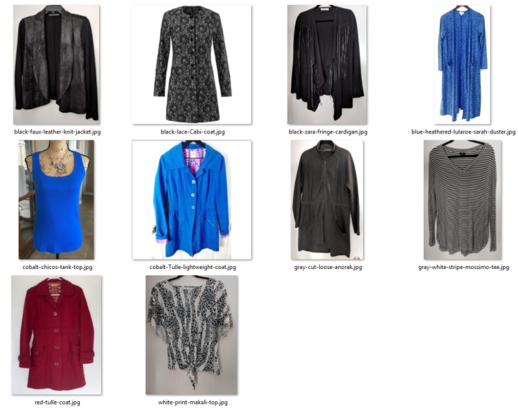So now that we’ve covered what’s not part of my “Half Project” as it gets under way, let’s look at what is included in my active wardrobe. I have selected garments for the next full year’s wear, so there are both warm weather and cool weather items in the mix. I thought it would be helpful to look at patterns among the garments I’ve opted to include in my closet.